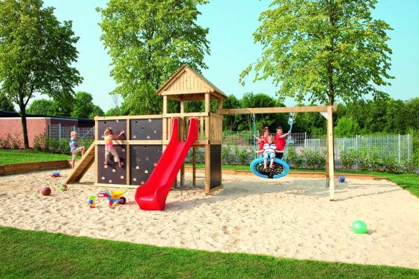 „Spielen ist die Arbeit des Kindes“ – so formulierte es schon vor hundert Jahren Maria Montessori. Im Spiel lernen Kinder die Welt wortwörtlich zu begreifen, sie zu entdecken und zu erleben. Dabei erwerben sie wichtige soziale, emotionale, kognitive und motorische Fähigkeiten. In unserer Gesellschaft aber bleibt Kindern immer weniger Zeit und Raum zum freien Spiel. Gerade die Möglichkeiten, sich einmal richtig auszutoben, zu rennen, zu klettern und zu balancieren werden rar. Spielgeräte für den eigenen Garten wie Schaukel, Wippe und Kletterturm sowie modulare Spielturmsysteme, die mit beliebig vielen Elementen frei kombiniert werden können, sind daher ideal, um Kinder an die frische Luft zu locken, ihnen Bewegungsfreiheit zu schenken und ihre Motorik zu fördern.
