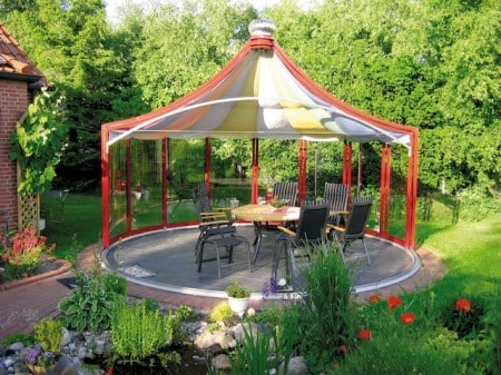 Drehbarer Gartenpavillon sorgt für lauschige Momente bei jedem Wetter