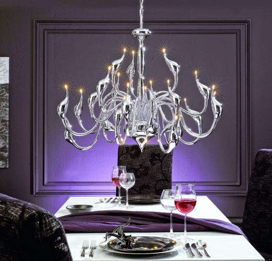 Die neuen Leuchten sind durch den Einsatz von Niedervolt-Halogen-Leuchtmitteln und LEDs nicht nur dimmbar, sondern auch energieeffizient. So sparen Niedervolt-Halogen-Leuchtmittel bis zu 30 Prozent und LEDs sogar bis zu 80 Prozent Strom im Vergleich zu herkömmlichen Glühlampen. Besonders gut für den Essbereich geeignet sind Pendelleuchten, da diese höhenverstellbar und in vielen Varianten und Modellen erhältlich sind. Durch die verschiedene Anzahl an Lichtquellen können Esstische jeder Länge und Bauform perfekt ausgeleuchtet werden. Ein Highlight, nicht nur zur Winterzeit, ist die Serie „Sevilla“ des Sauerländer Leuchtenherstellers WOFI. Das Swan Legend Design by Fabio Fornasier aus Murano, einer italienischen Insel nordöstlich von Venedig, bietet Leuchten für höchste Ansprüche und setzt jede Tafel in stilvolles Licht. Der Kronleuchter – erhältlich in zwei Größen – wird durch eine Decken-, Steh-, Tisch- und Wandleuchte ergänzt.