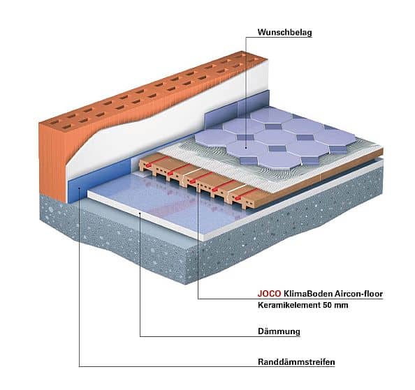 In der Oberfläche der Keramikplatten verlaufen die Heizschlangen, in der Unterseite sind Hohlräume, durch die Frischluft eintritt und Abluft abgeleitet wird. (Foto: epr/Joco)