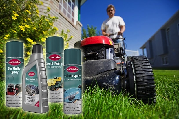 Nach der Reinigung steht die Pflege der Rasenmähermesser an. Frost und Feuchtigkeit setzen den Klingen zu, Rost kann sich bilden. Das Caramba Schutzspray für Rasenmähermesser schützt die Klingen und hält sie länger scharf. Kurz vor der Winterruhe bieten sich auch ein Ölwechsel und der Austausch des Luftfilters an. Caramba Rasenmäher- Öl schützt den Motor auch bei hohen Belastungen vor Verschleiß. So vorbereitet kann das Gerät in den Winterschlaf gehen. Sollte beim ers- ten Gebrauch nach der Pause der Motor widererwarten nicht ansprin- gen, hilft Caramba Rasenmäher Starthilfespray.