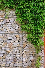 Steinmauer mit Gabionen